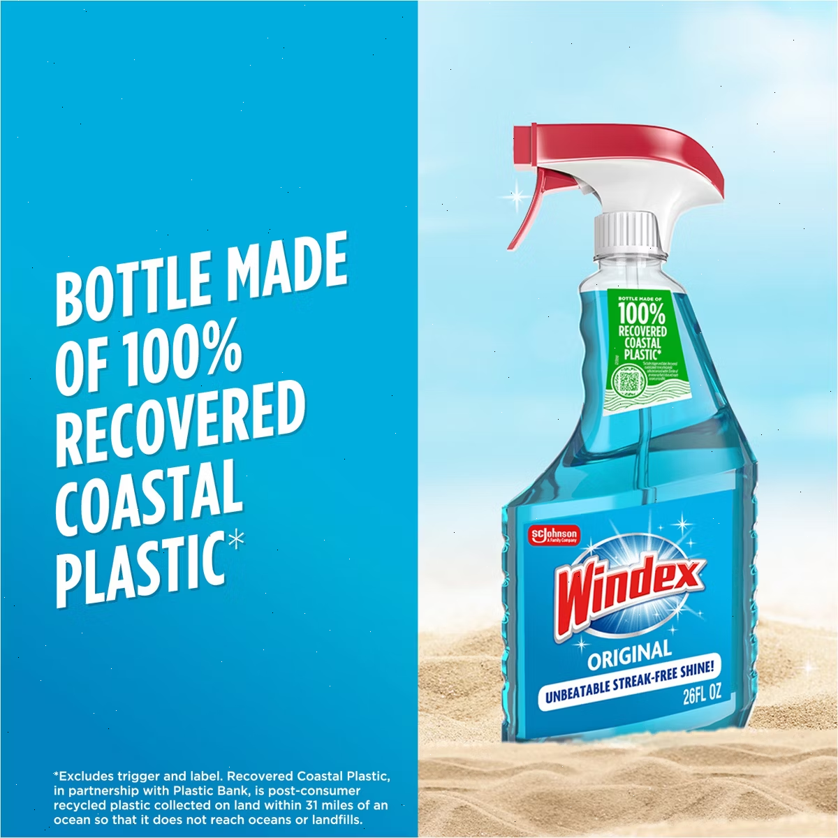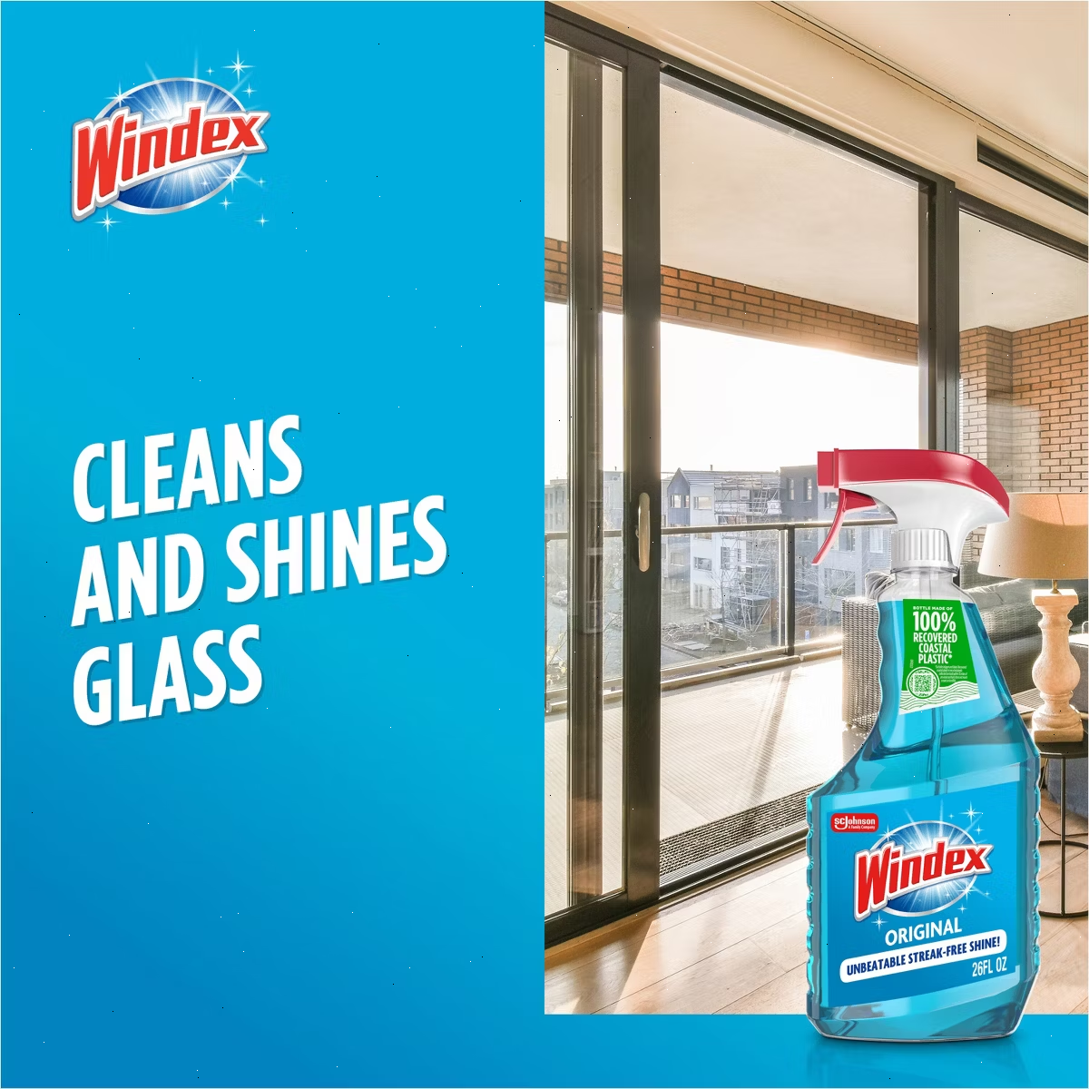Windex Original Glass Cleaner spray bottles are made from 100% recovered coastal plastic (excluding trigger)**. This glass and surface cleaner works great on windows, mirrors, glass and more. Enjoy 100% of the goodness that natural light brings with Windex® Original Glass Spray. Light is Life. Let it all in.